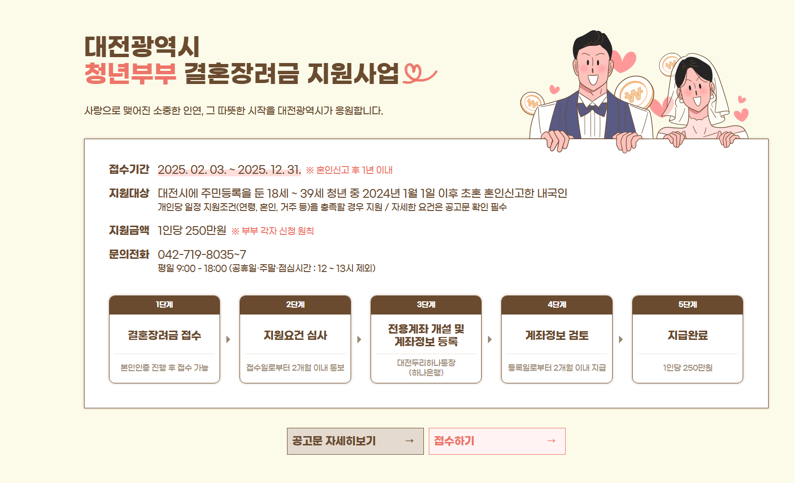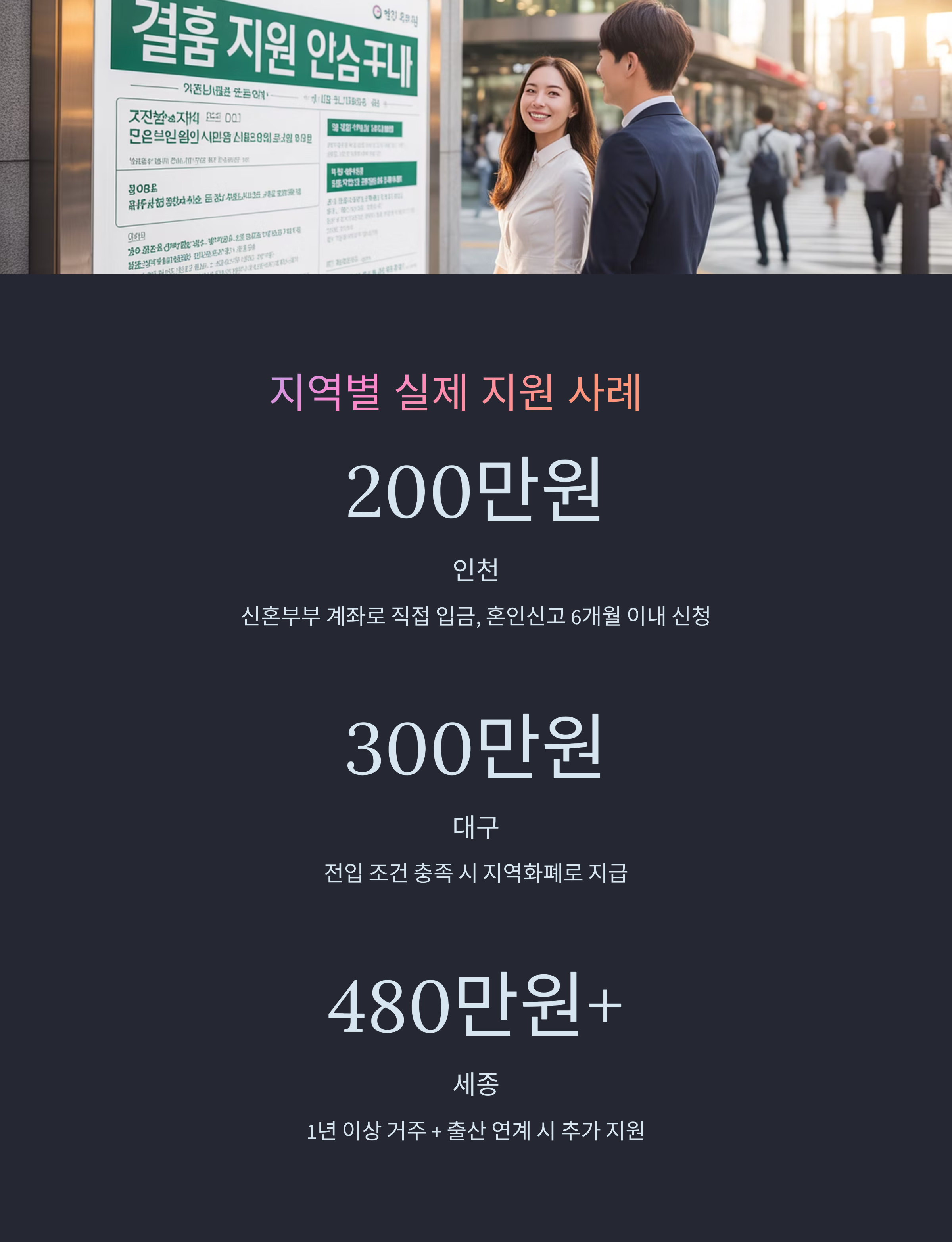 - 세종결혼장려금: 출산·양육 연계, 최대 2년 지원