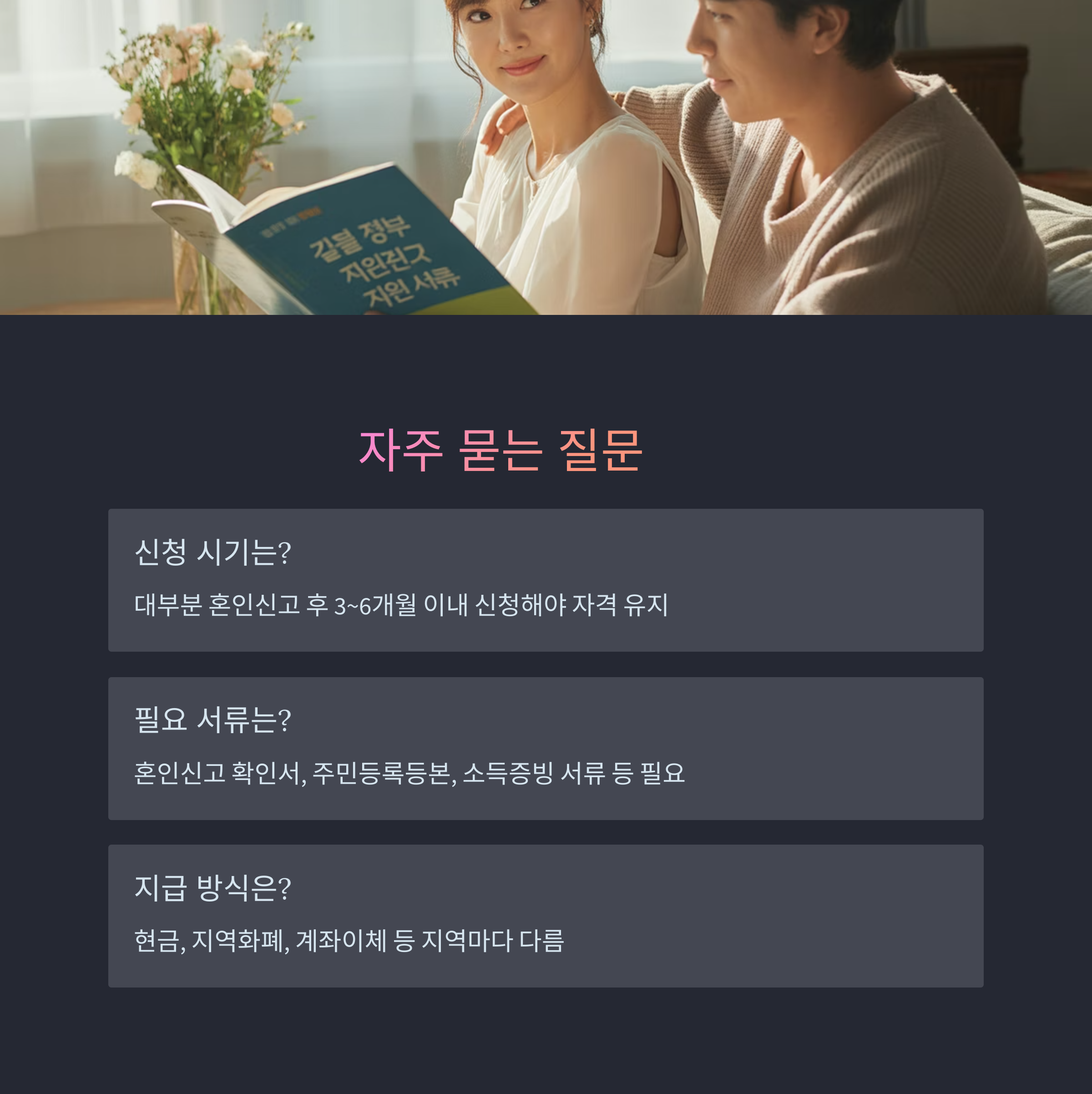 결혼장려금지원 혜택 유형