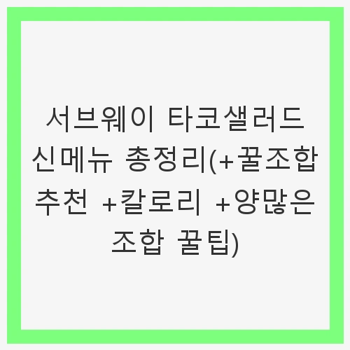 👉서브웨이 타코샐러드 신메뉴 총정리(+꿀조합 추천 +칼로리 +양많은 조합 꿀팁) 바로보기신메뉴 타코샐러드의 매력