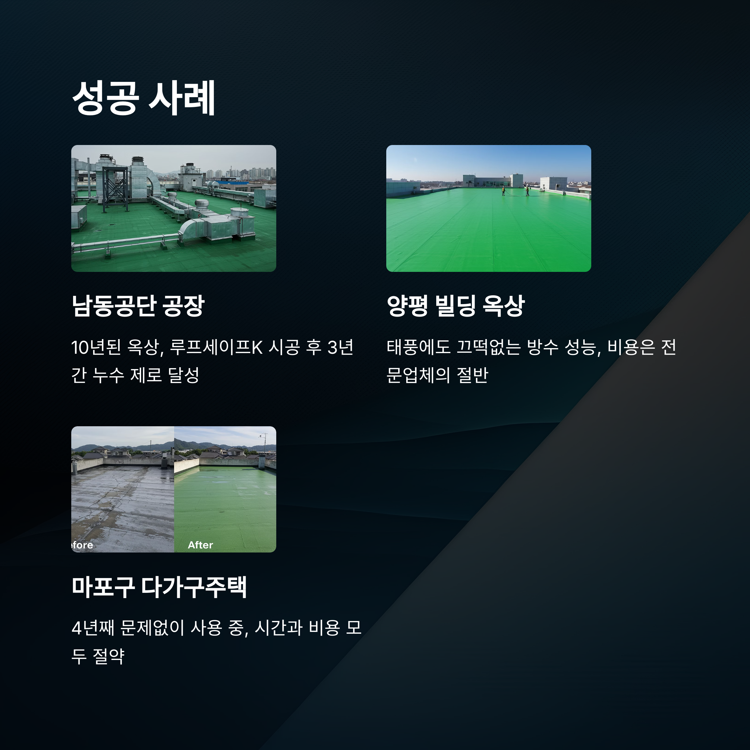 실제로 루프세이프K를 사용해 셀프 옥상방수에 성공한 사례들을 살펴보면, 그 효과를 더 실감할 수 있어요.