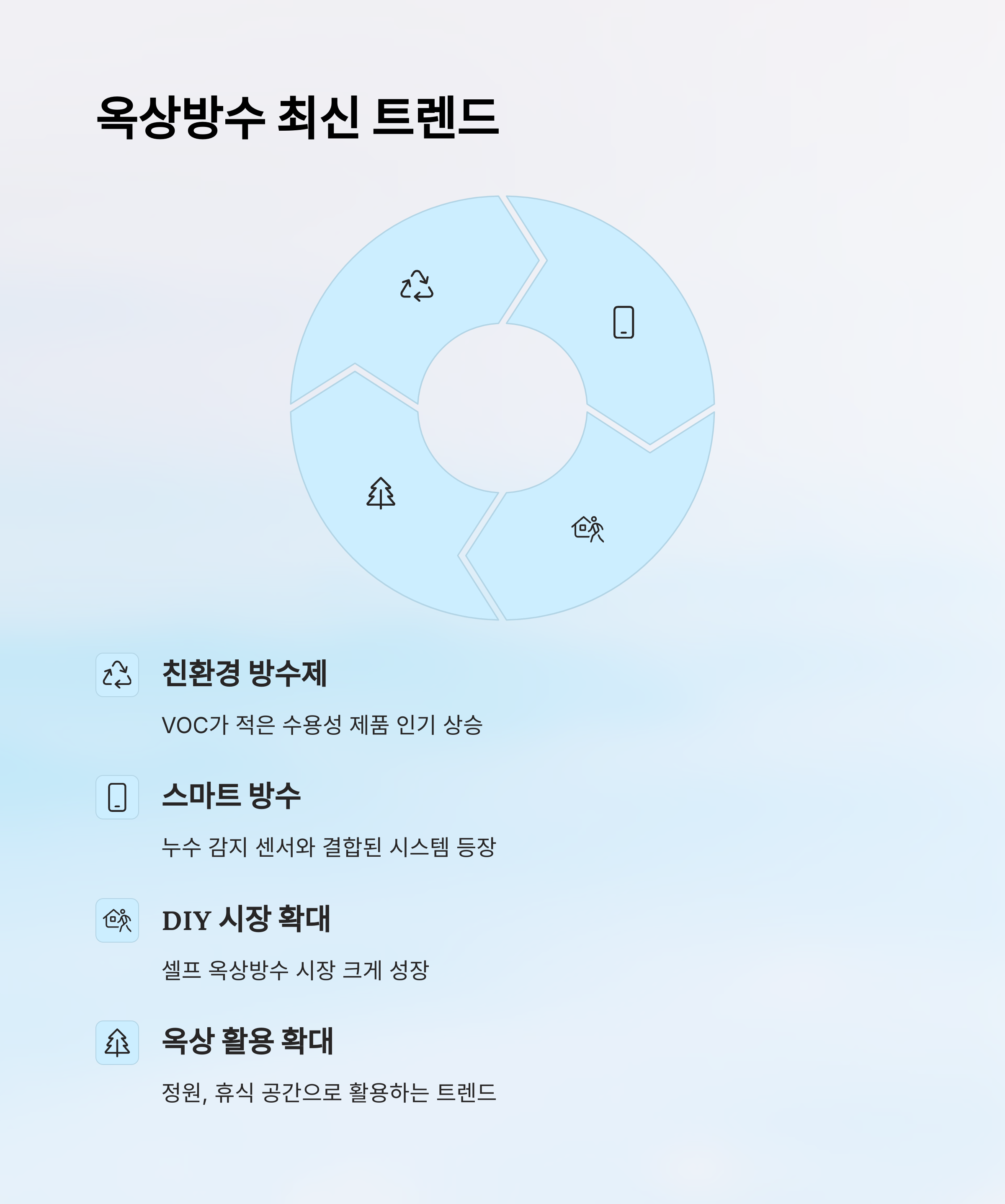 옥상방수 시장도 계속 발전하고 있습니다. 2025년 현재 주목받고 있는 옥상방수 관련 트렌드를 알아보세요.
