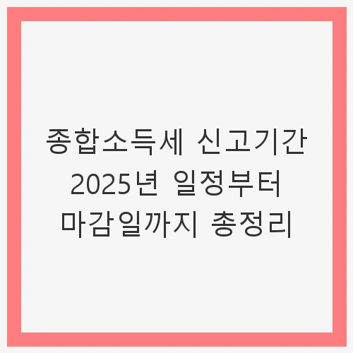 2025년 종합소득세 신고 및 납부 기간은 다음과 같습니다. 주요 날짜를 확인하고, 해당 기간 내에 신고를 완료할 수 있도록 준비하시기 바랍니다.