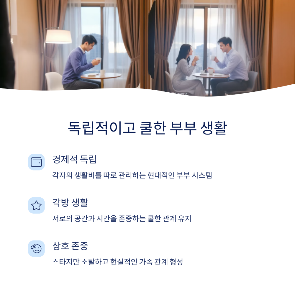각자의 자산은 별도로 관리하며, 생활비와 선물도 개별적으로 처리하는 철저한 재정 분리가 이루어져 있습니다.