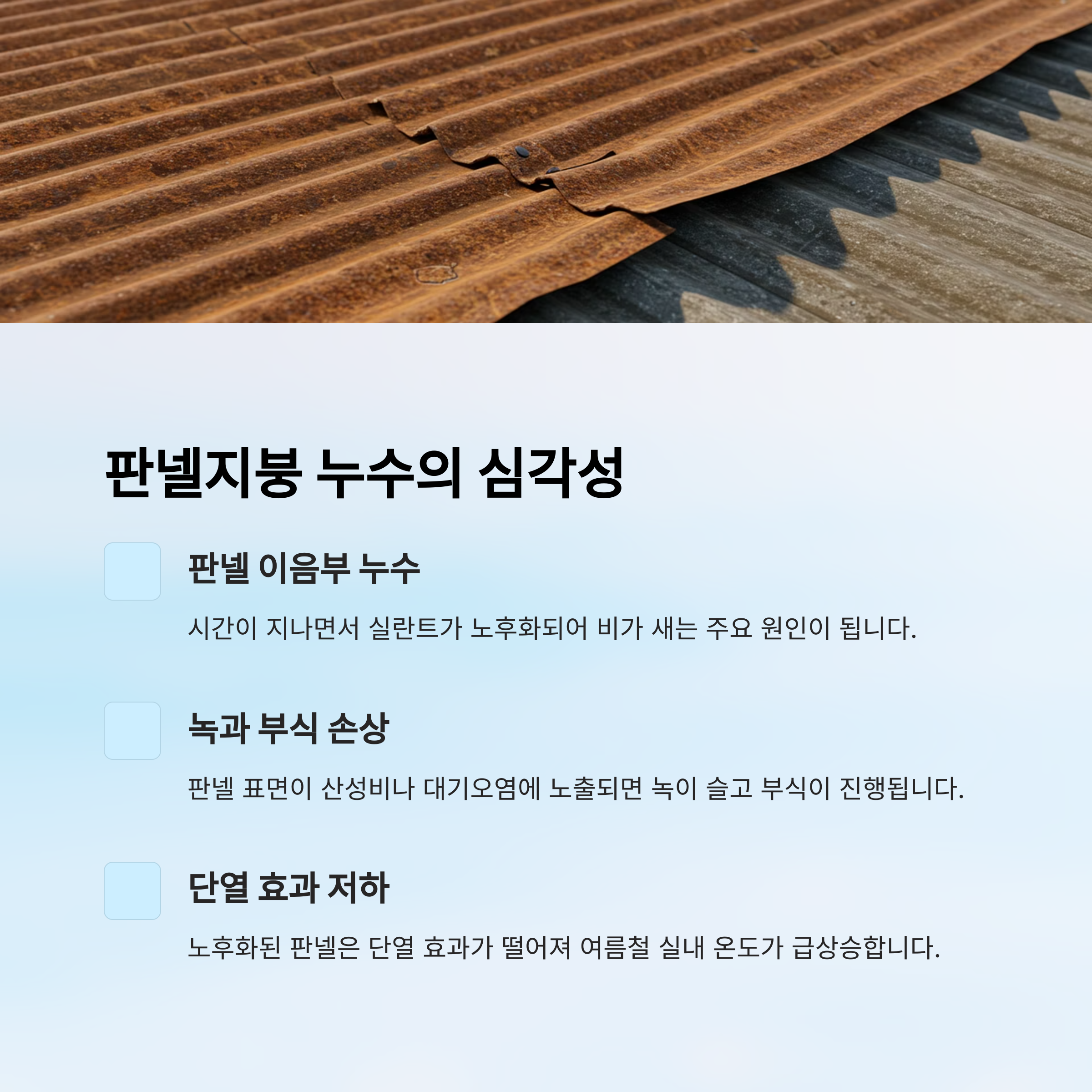 판넬지붕 누수와 노후화의 심각성 🤔