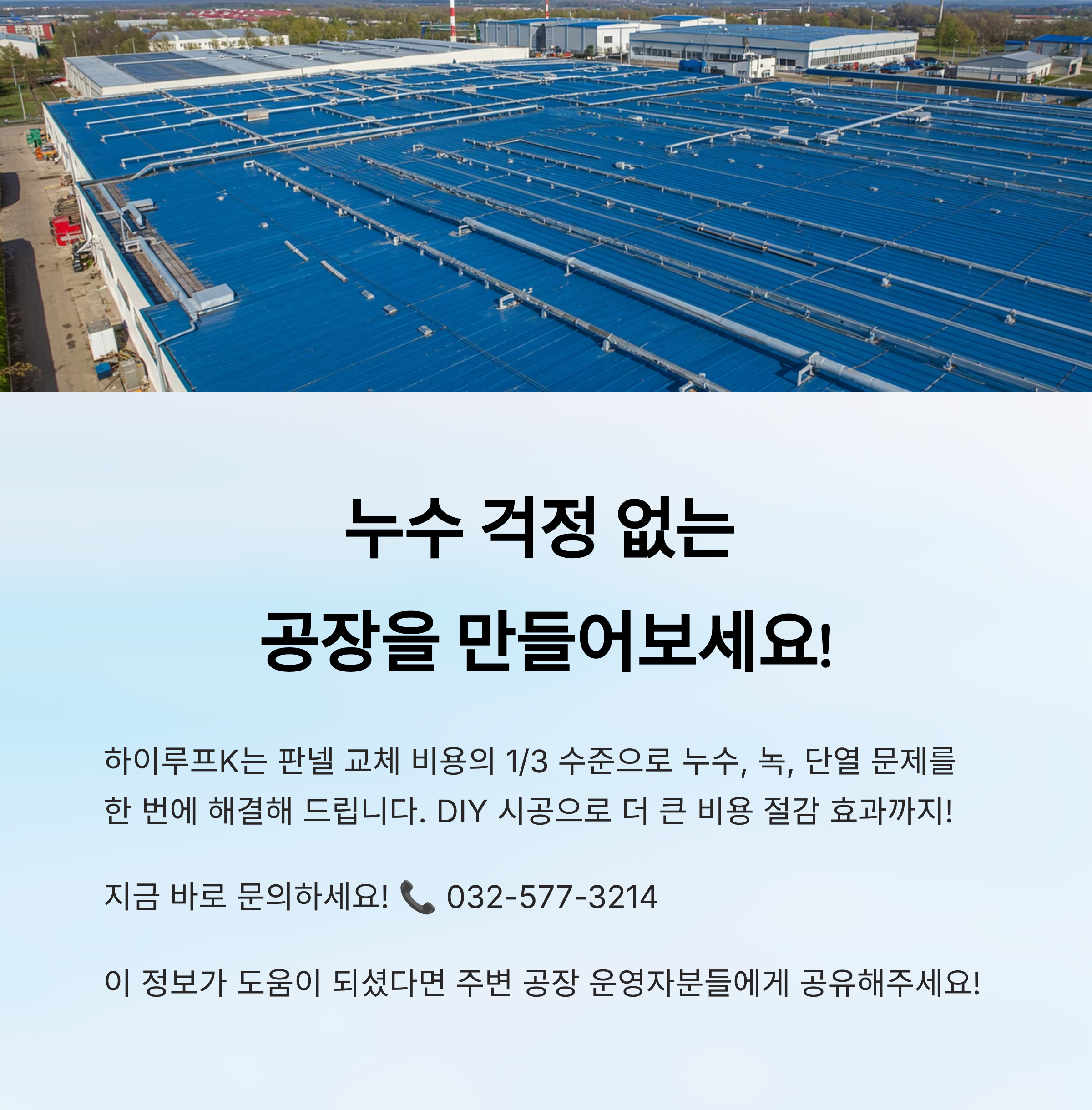 대한민국 산업 현장의 많은 공장들이 판넬지붕으로 지어져 있습니다. 이런 판넬지붕은 시간이 지날수록 다양한 문제점을 드러내는데요, 가장 큰 문제는 바로 '누수'입니다.